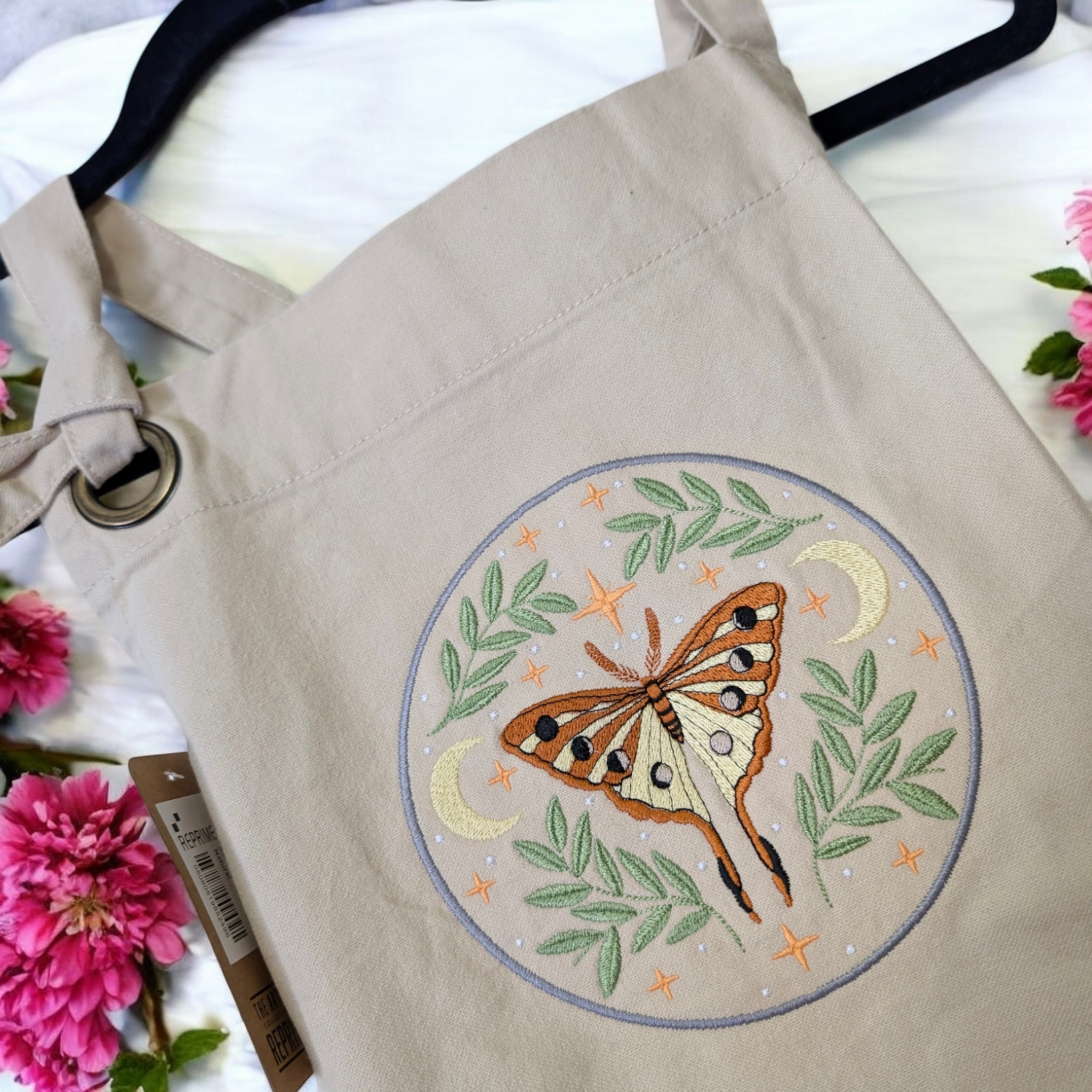$50.00Elevate your workspace with the Embroidered Artisan Apron, featuring the mystical “Mystic Moth” design. With its durable canvas build and convenient pockets, it’s a perfect blend of function and artistic style for kitchen or creative use.